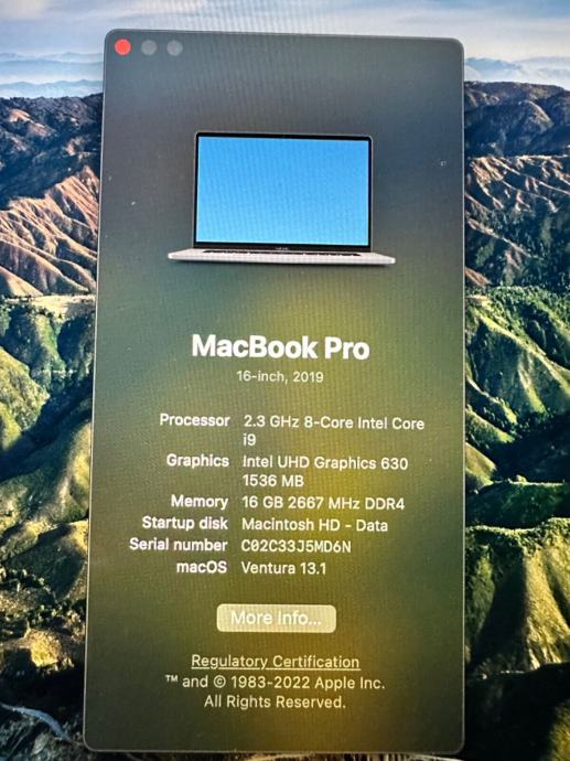Prodajem MacBook Pro od 16" iz 2019. Radi odlično i nema udubljenja ni ogrebotina. Ovo je bio moj laptop za editiranje, ali ga više ne koristim jer sam pronašao novi hobi. Laptop ću obrisati nakon kupnje prije slanja. Uz ovo prijenosno računalo dolazi i originalna kutija/punjač/kabel kao i originalno jamstvo. Istječe 12. travnja 2023. *Otprilike 80 ciklusa.