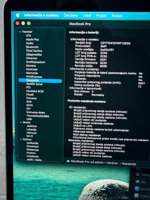 Macbook pro 16 2019 godina, 1T flash memorije, i9 procesor 32GB rama sa novom baterijom 3 ciklusa punjenja, laptop je bez crtice, dolazi sa punjačem!