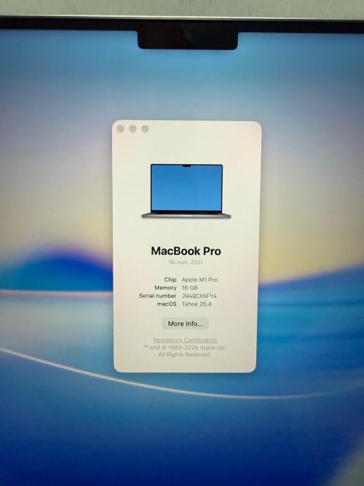 Prodajem Apple MacBook Pro 16 inča iz 2021. godine. Laptop je kao nov 10/10!