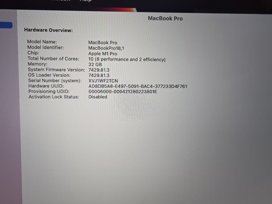 Macbook Pro M1 16" 32 Ram 512Gb Novi