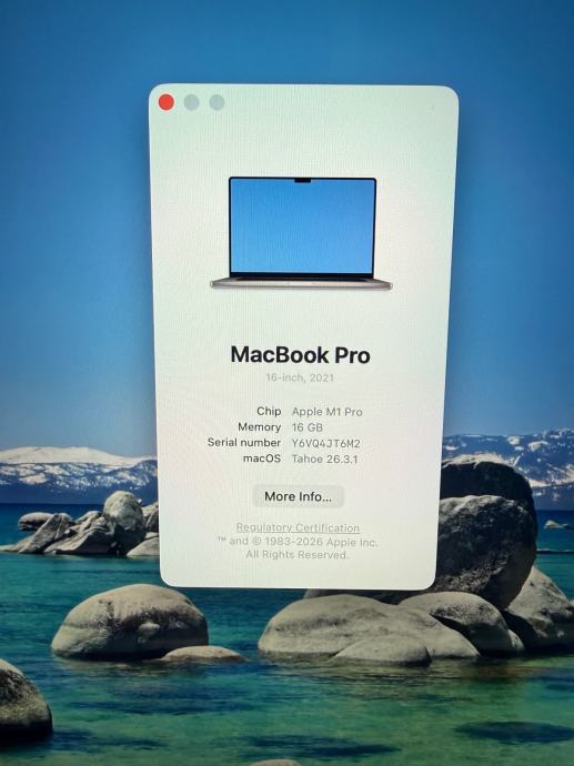 Prodajem Apple MacBook Pro 16 inča iz 2021. godine. Laptop je očuvan,