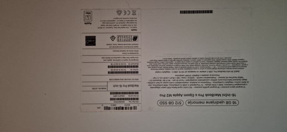 Prodajem navedeni Macbook Pro 16" M2 Pro, 16 GB RAM, 512 GB, 2023. god. Laptop je jako očuvan bez tragova korištenja. Dolazi u originalnoj kutiji s originalnim punjačem.