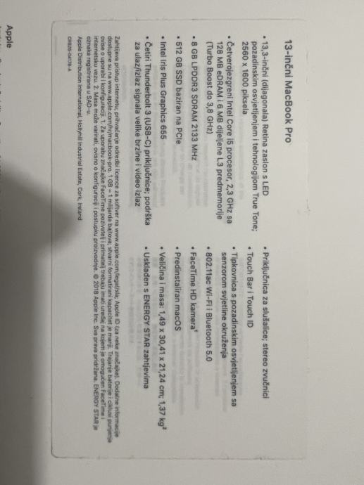 Prodajem MacBook Pro iz 2018. godine. Korišten kao alat u uredu. Kupljen 2019. godine. Stanje 9/10.