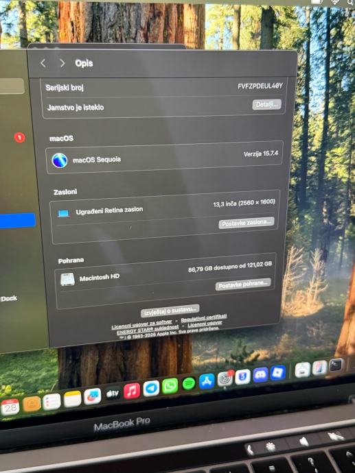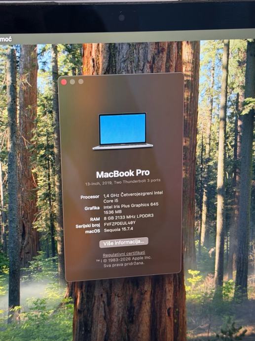 Prodaje se MacBook Pro 2019 model sa touchbarom 128gb memorije i 8gb ram