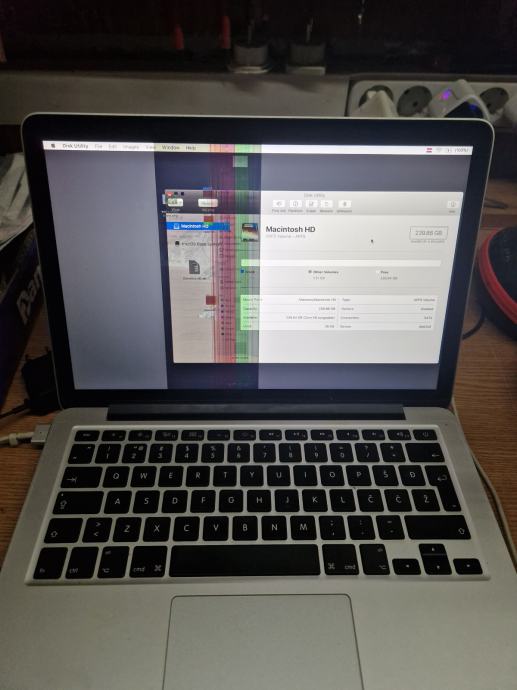 Prodajem korišteni macbook pro, display oštećen, hdmi port radi, nije do grafičke, baterija loša, originalni magsafe punjač, vidljivi tragovi korištenja, računalo radi minus problem s LCD-om vidljivo na slikama, s eksternim monitorom ok, ako imate vremena instalirati linux distribuciju može poslužiti kao uredsko računalo, media server i slično. Prodajem da mi ne skuplja prašinu 8Gb RAM-a, 256Gb SSD. Za dijelove isto ok uređaj. Samo punjač je oko 50-ak € pa ako Vam je intersantno javite se.