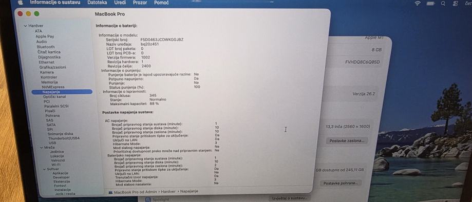 Prodajem MB Pro M1 uščuvan. Dolazi sa kutijom. Punjač je na žalost potrgan. Mogu svakako kupiti novi u iStyle ali je cijena u tom slučaju veća. Dakle, strgan kabl i punjač. Laptop se svakako može isprobati prije kupnje i vidjeti da se puni normalno. Slobodno pitajte što vas dodatno zanima.