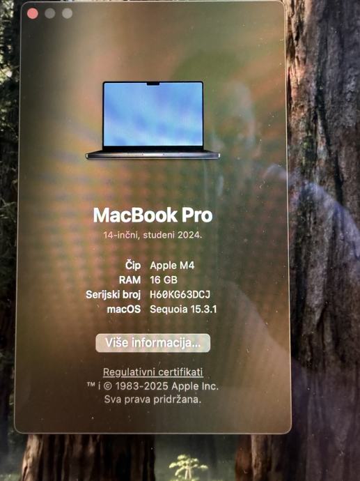 Prodajem Macbook Pro 16 GB M4 kupljen u 7 mjesecu 2025
