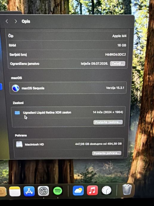 Macbook Pro M4 16 GB, 512 GB SSD pod garancijom 07/2026