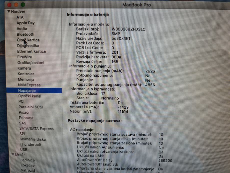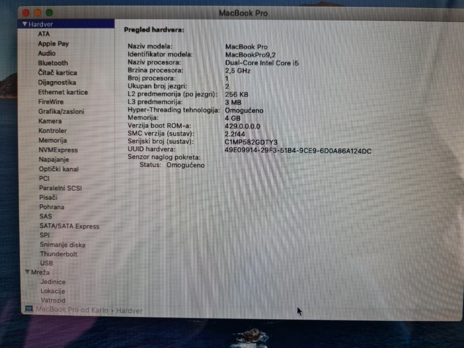 Prodajem rabljeni Apple MacBook Pro prijenosno računalo. Tipkovnica i trackpad su u urednom stanju.