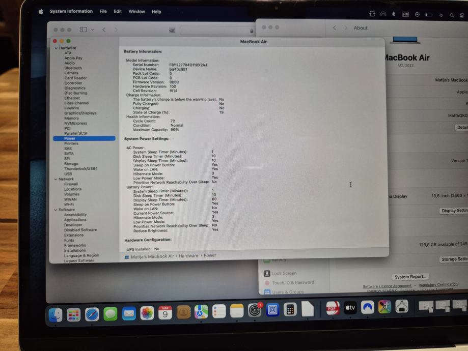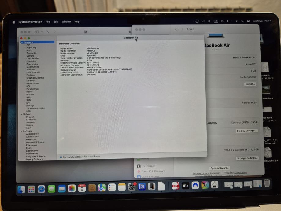 Mcbook AIR M2 8GB RAM, 245GB disk