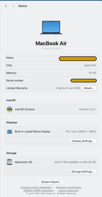 Midnight Macbook Air M2 15"; - 16GB RAM, 512 GB SSD
