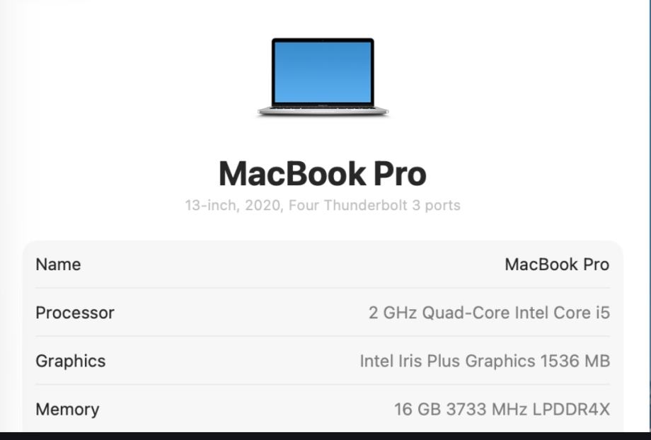 https://everymac.com/systems/apple/macbook_pro/specs/macbook-pro-core-i5-2.0-quad-core-13-2020-4-thunderbolt-3-ports-scissor-specs.html