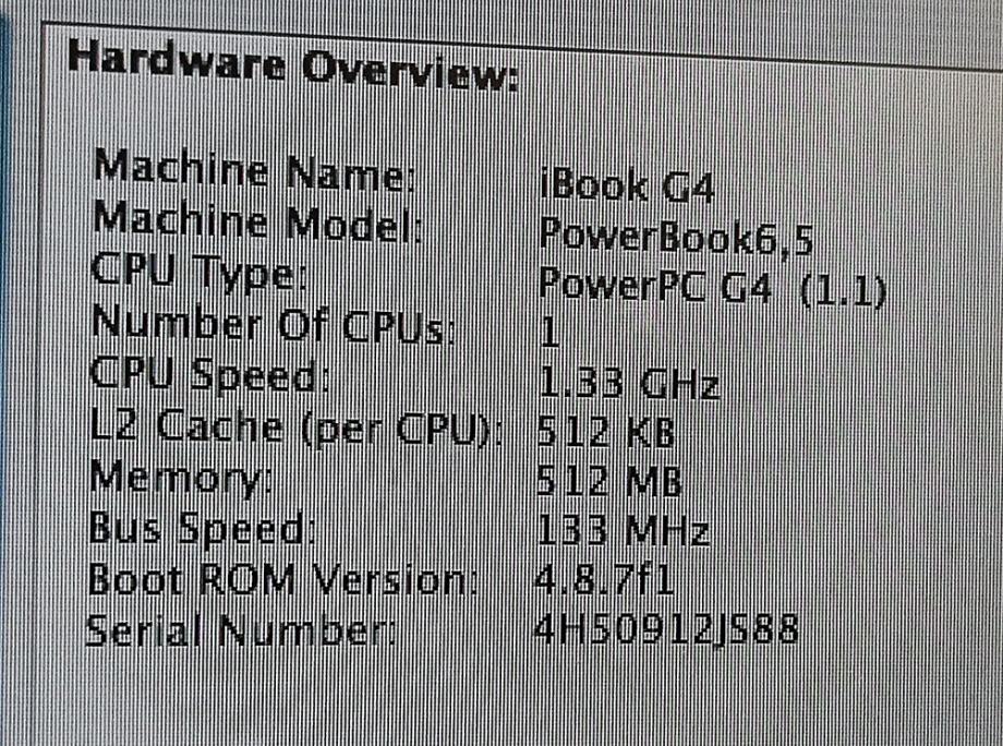 - model A1055 / iBook G4/1.33 14-Inch (Late 2004)
