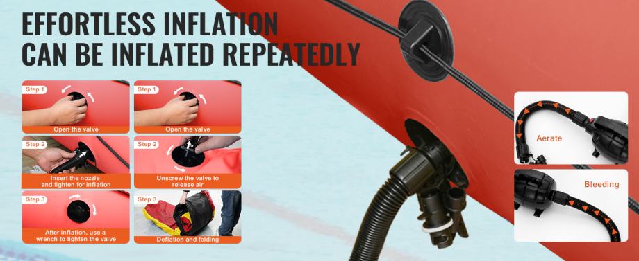 Jednostavno napuhavanje ili ispuhavanje s pumpom za napuhavanje/ispuhavanje velike brzine, omogućujući vam da uživate u fantastičnom ljetu u samo nekoliko minuta. Opremljen pumpom za napuhavanje od čistog bakra od 600 W, proces napuhavanja neće biti prekinut, a ista se pumpa može koristiti i za napuhavanje i za ispuhavanje. Prijenosna platforma za plivanje za odskakanje lako se prenosi nakon ispuhavanja, stoga se preporučuje napuhati je na mjestu igranja.