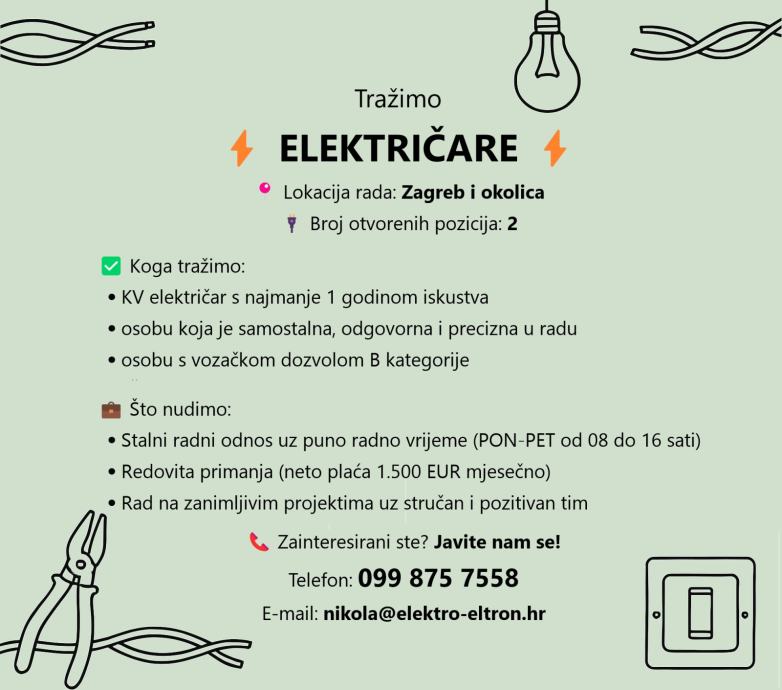 Tražimo ELEKTRIČARE – pridruži nam se! (m/ž)