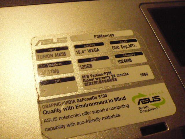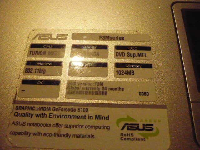 ASUS F3M Turion MK38/ 1GB DDR2/ 120GB SATA/ Windows7 Ultimate