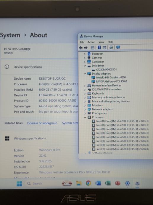 ASUS GAMING (Intel i7/8GB RAM/SSD/GTX 950/WIN11)