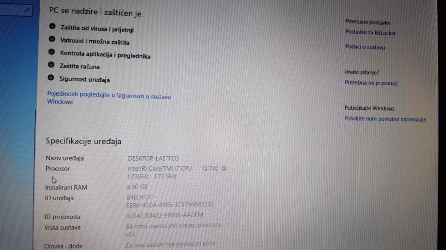 Intel core i7 ,8 gb rama,120gb ssd+640 gb hdd,gpu nvidia geforce gt 425M 1 gb , kamera hd 2.0 s preklopom, zvucnici B&O ICE power, ekran 15,6 HD LED ,USB 3.0,HDMI,e-sata,citac kartica, bluetooth,baterija oko 3 sata, win 10 ,office paket,punjac,torba...