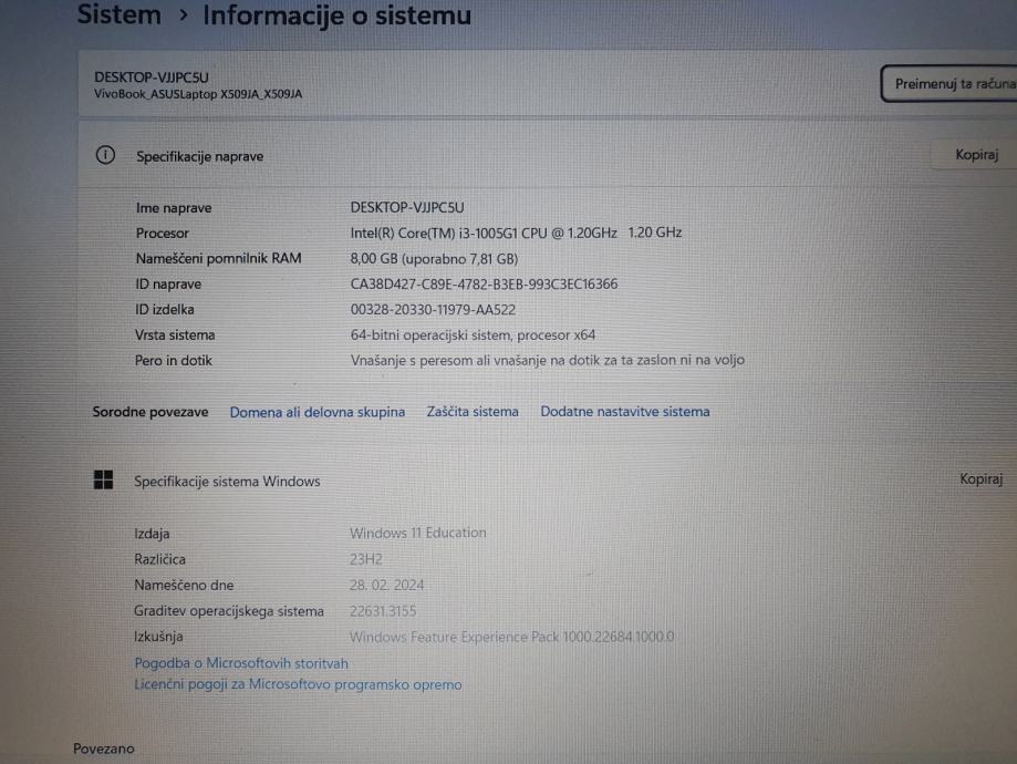 Laptop je novo instaliran s Windows 11, Office paketom (Word, Excel i ostalo). Na servisu pregledan i uređen. Uključuje napajanje s kabelom 220V. Jezik je slovenski, ali možete ga postaviti i na hrvatski ako želite.