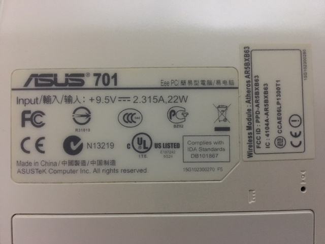 Prodajem prijenosno računalo Asus Model 701 Eee PC 4G Pearl White, 4G, SSD, 1GB + 512MB, DDR2, Intel Mobile CPU &Chipset, Wi-fi, Camera, Ethernet. Računalo je ispravno jedino je potrebna nova baterija( u ZG nova 219kn) ali može raditi na vanjsko napajanje,torba,upute,kutija.Računalo je idealno za programere koji se bave robotikom. Mogućnost spajanja na vanjski monitor.Jako male dimenzije računala: širina 225mm, dubina 165mm, debljina 21-35mm, a težina je samo 922g.
