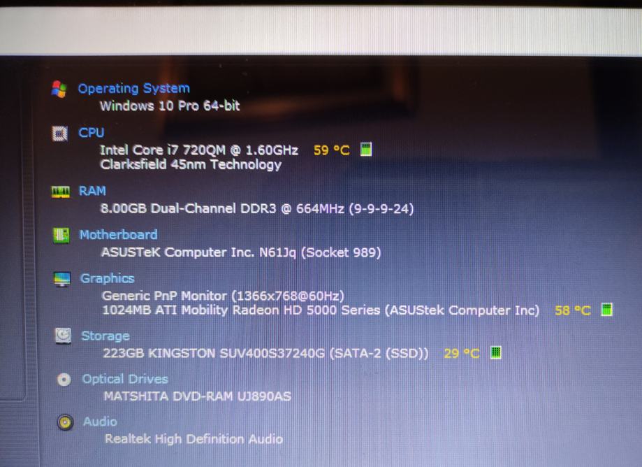 Svojevremeno jedan od jačih modela koji i danas izvrsno odrađuje svakodnevne zadatke, a po potrebi bez problema zavrti i starije igre. Na računalu je napravljena nadogradnja SSD diskom od 240 GB i povecana mu je radna memorija na 8 GB.