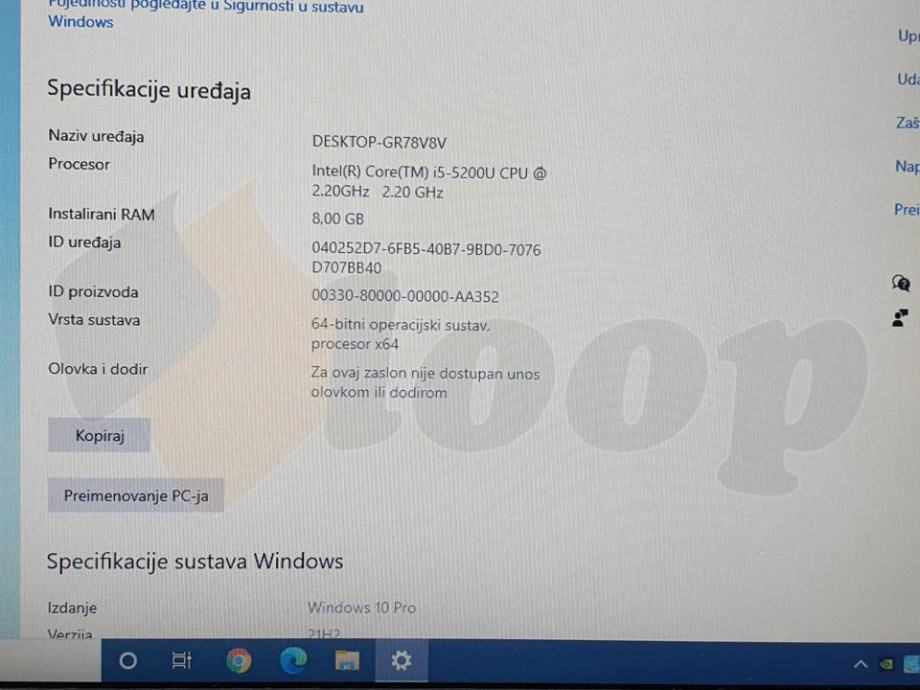 korišteni laptop Asus R556L. CPU i5-5200U; 4GB RAM; 256GB SSD; Intel HD 5500 + nVidia GF930M @Full HD 1920x1080; 2 x USB 3.0 ports; 1 x USB 2.0; Gigabit Ethernet & 802.11ac Wi-Fi; Bluetooth 4.0; SD Card Reader; HDMI Port. Uređaj je predinstaliran na operativni sustav, očišćen i ažuriran, te je spreman za svakodnevnu upotrebu.