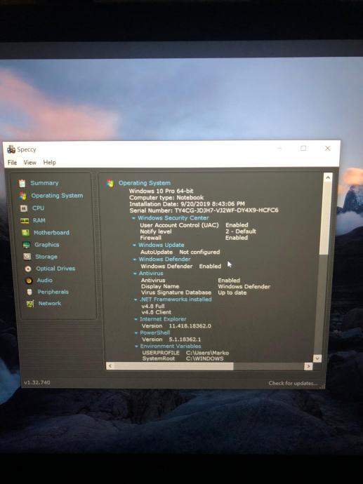 U nastavku su specifikacije laptopa: