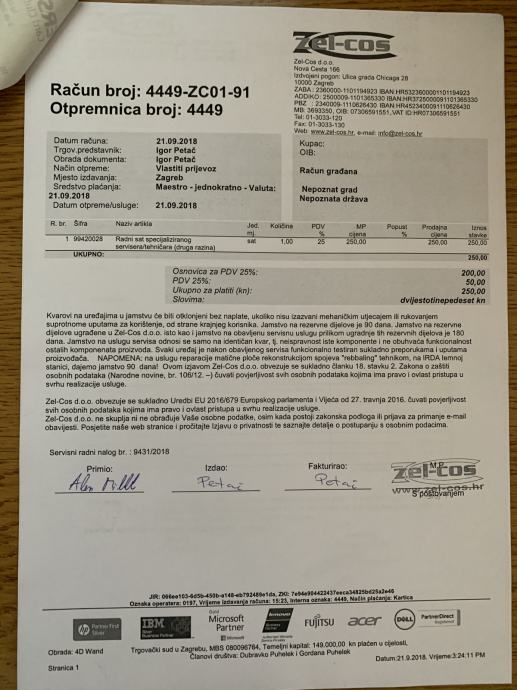 Laptop je moguće pogledati/preuzeti u Bjelovaru (vikendom) ili u Zagrebu (preko tjedna ili vikendom). Molim kontaktirati me putem Whatsapp-a ili mail-a, budući da možda neću moći razgovarati.