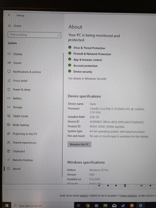Operativni sustav: Windows 10 Pro