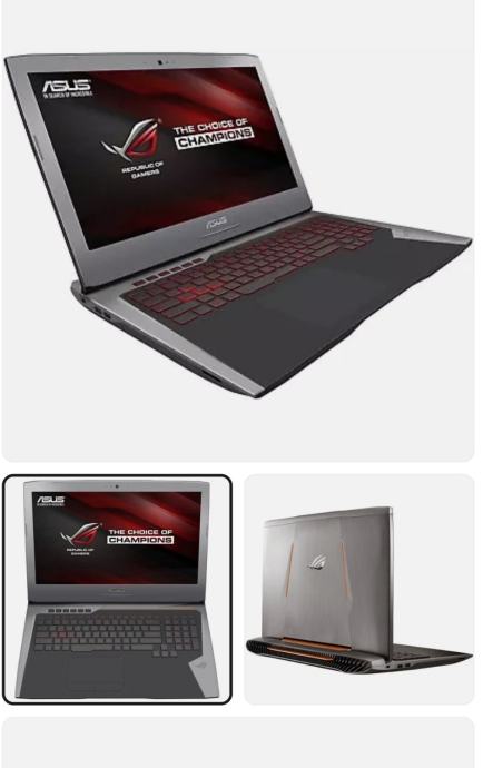 Asus G752V gamerski laptop sa 16Gb Ram mem, 1tb Hdd, Nvidia 1060 graf. karticom 6gb,ispravan,radi ne korištenja prodajem za 400 eura. Uz laptop ide i originalni Asusov punjač. Mob. 092 339 7053