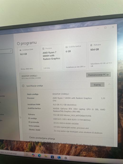 Prodajem navedeni laptop kupljen u svibnju 2023. godine te mu je upravo istekla garancija. Uredaj je u vrlo dobrom stanju, sve na njemu radi, jedino ima malo ostecenje na lijevom kutu koje ne utjece na rad racunala. Dolazi s instaliranim windows 11 os-om.