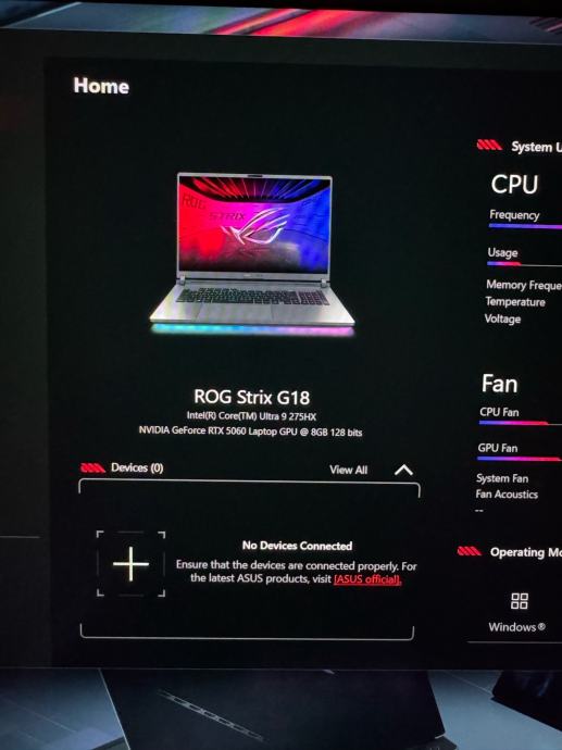 Intel Core Ultra 9 275HX / RTX 5060 / 32 GB RAM / 1 TB SSD / 18” ROG Nebula zaslon, 240Hz