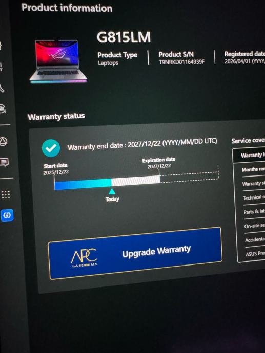 Račun, garancija do 2028.god plus mogućnost nadogradnje za još jednu godinu preko myAsus upgrade warranty.
