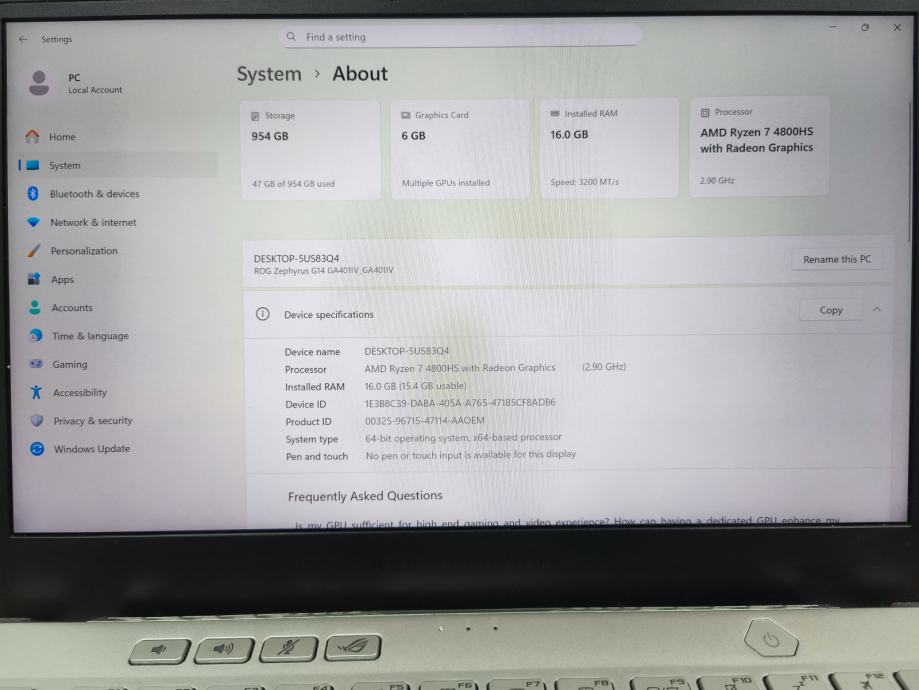 ASUS ROG Zephyrus G14, R7, RTX 2060 Max-Q