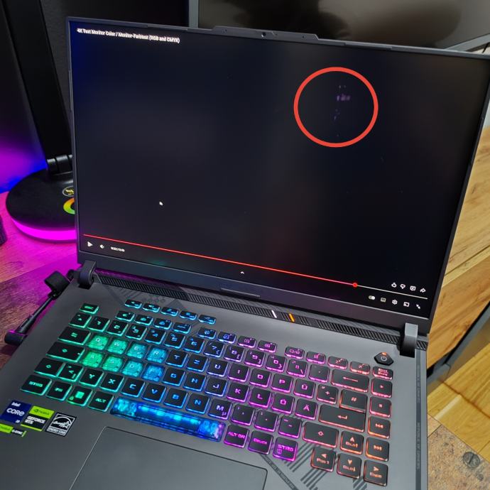 NAPOMENA: Na jednom djelu ekrana ima manja fleka koja je vidljiva samo na crnoj pozadini dok u drugim bojama se ne primjećuje ta fleka (Označeno na slikama četvrta po redu)