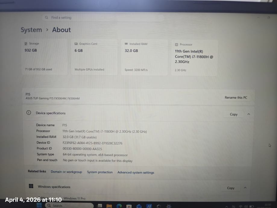 Prodajem laptop Asus TUF F15, model FX506HM.