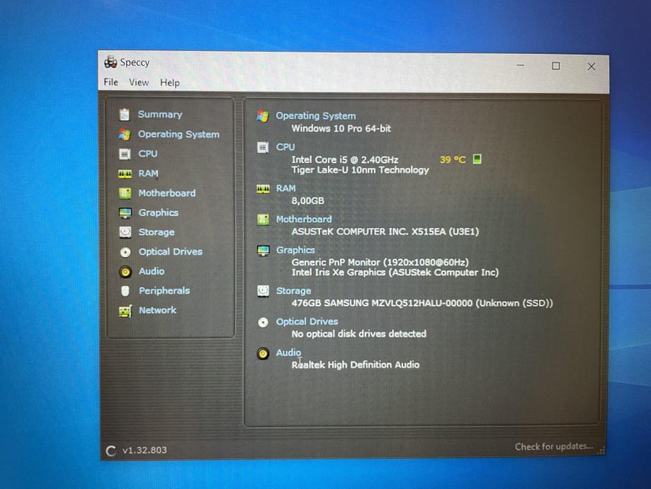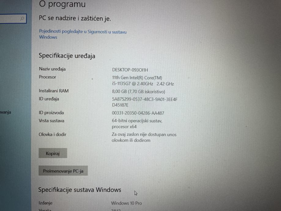 Procesor- 11th Gen Intel(R) Core(TM) i5-1135G7 @ 2.40GHz 2.42GHz