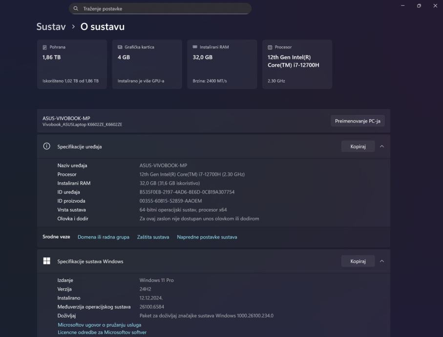 Za sve koga zanimaju detaljne karakteristike molim da proguglaju "Vivobook Pro 16 OLED (K6602, 12th Gen Intel)" i otvore službenu ASUS stranicu. Stavio bi ovdje link ali ne smijem...