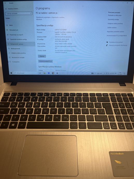 Prodajem potpuno funkcionalni Asus laptop Vivobook X540U iz 2018. god s punjačem.