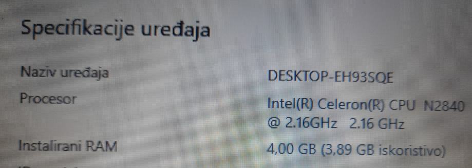 Procesor : dvojezgrenii procesor Intel® Dual-Core Celeron® N2840 Processor (1M Cache, up to 2.58 GHz) s Intel® HD Graphics