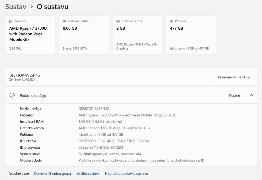 - Procesor: AMD Ryzen 7 3700U (boost do 4 GHz)