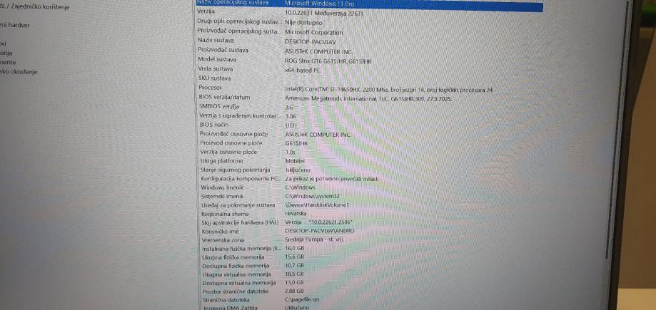 Prodaje se gamerski laptop Asus Rog Strix G16 G615JHR-RV038