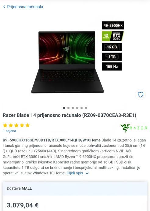Prodajem premium high end razer blade laptop. Placen je 3700eura, i dalje u ducanu cijena nema ispod 3200eura.