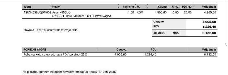 Laptop je nov, nekorišten. Original Windows 10. Garancija 4 godine.