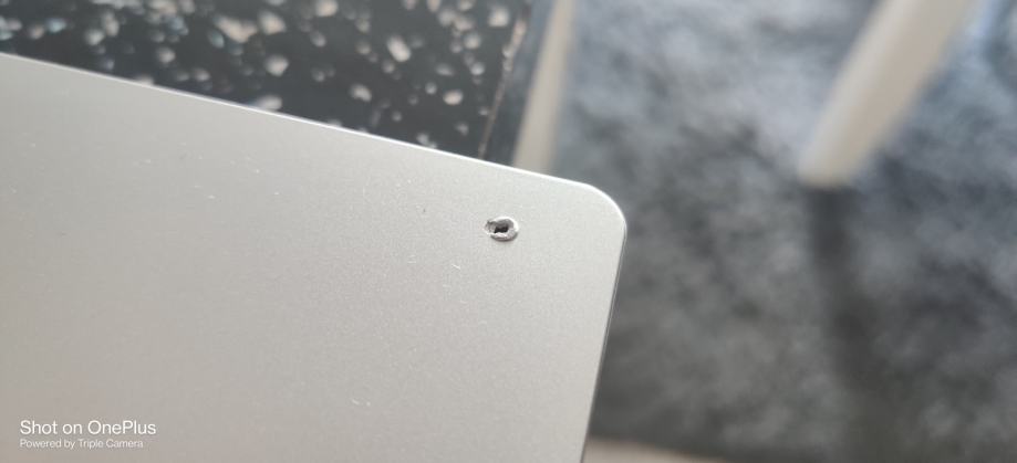 Kod pokušaja nadogradnje memorije došlo do ostecenja na kućištu... Greškom stavljeni duži šarafi umjesto kratkih te se zato vidi ono... kome smeta prekriti sa naljepnicom i rješen problem...vidi slike...