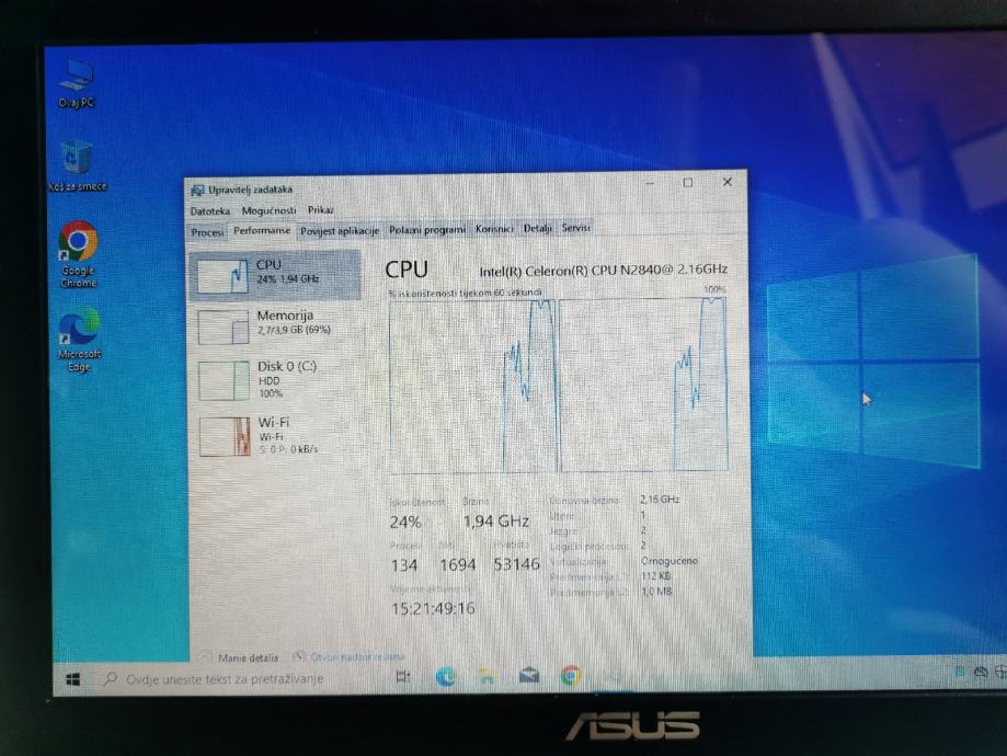 4 gb ram , 500 gb hdd, 15.6 hd led ekran , windows 10 frisko instaliran !