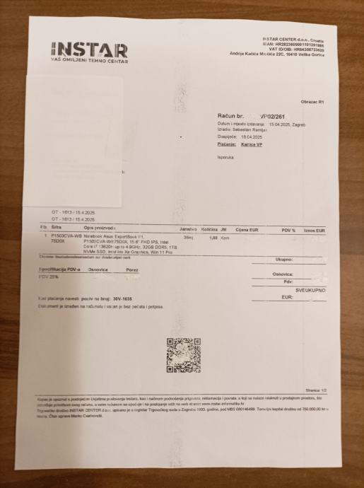 Notebook Asus ExpertBook P1, P1503CVA-WB75D0X, 15.6" FHD IPS, Intel Core i7 13620H up to 4.9GHz, 32GB DDR5, 1TB NVMe SSD, Intel Iris Xe Graphics, Win 11 Pro, Jamstvo: 36 mjeseci
