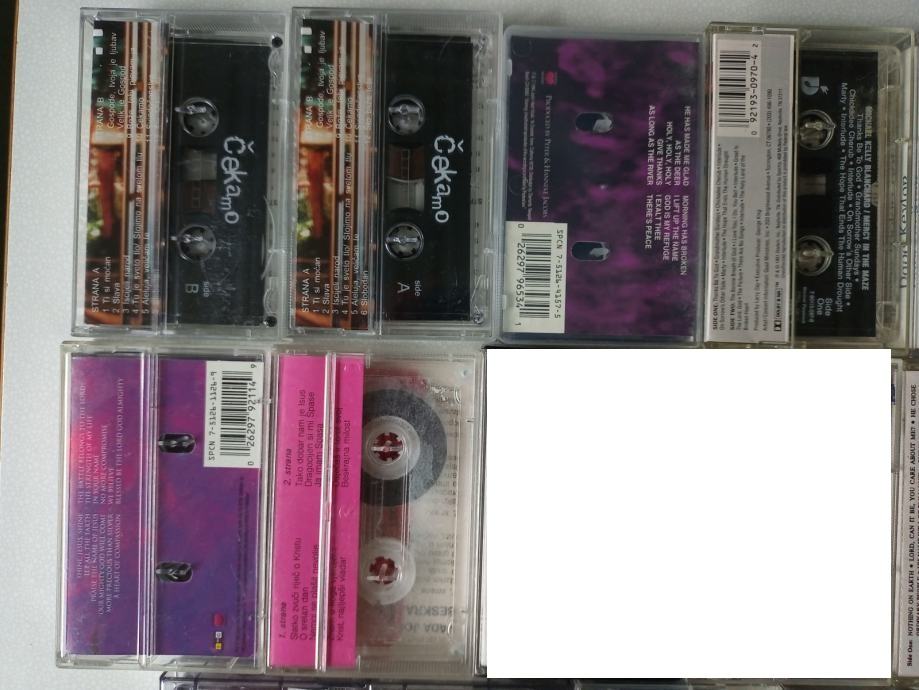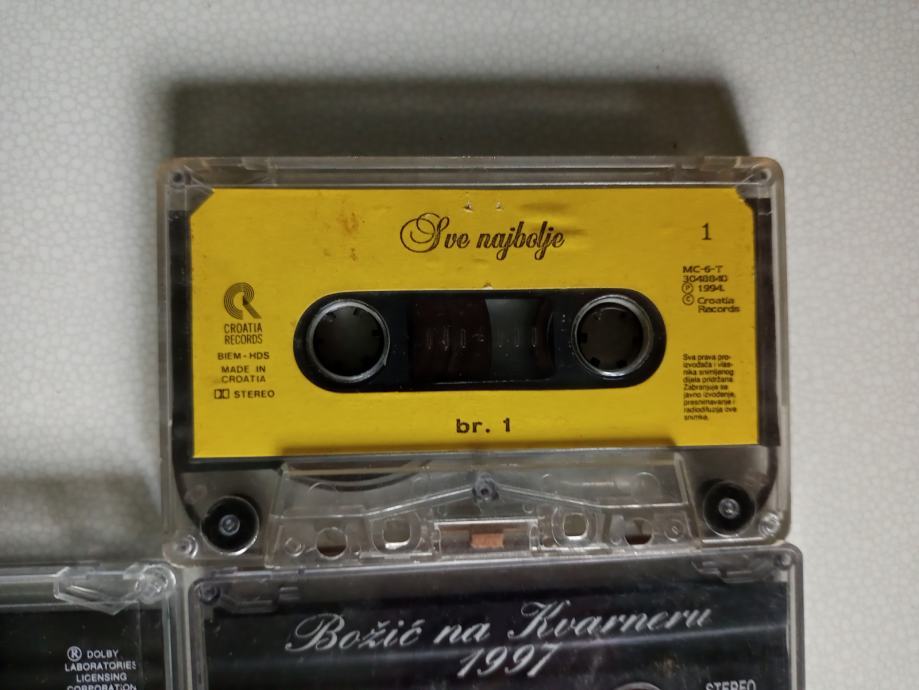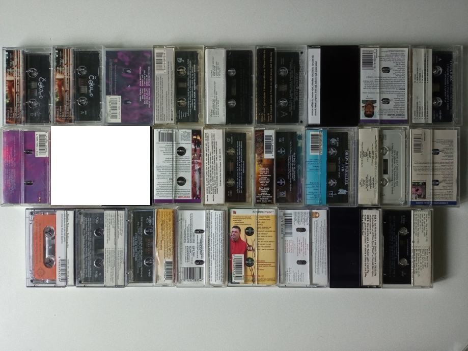 Naslove pročitajte na fotografijama uz oglas. Dvije kasete su bez omota, dok su svi ostali primjerci potpuni i naizgled u odličnom stanju. Niti jednu od ovih kaseta nisam provjerio, tj. nisam niti jednu od njih stavio u kasetofon. Budućem vlasniku vraćam 1 € po svakoj kaseti za koju bude tvrdio da nema snimljen odgovarajući sadržaj ili ako je vrpca na njoj u lošem stanju.