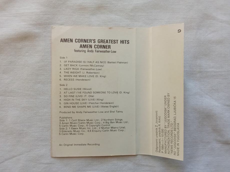 Amen Corner – Greatest Hits, glazbena kaseta, Jugodisk 1984.