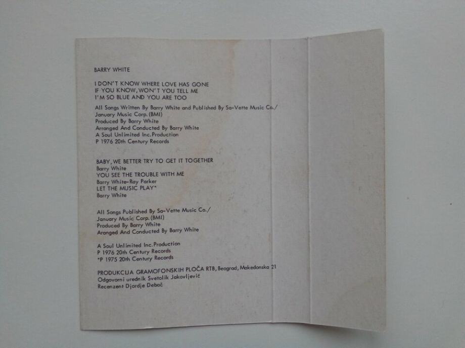 Barry White – Let The Music Play, glazbena kaseta, PGP RTB 1976.